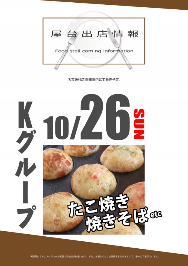 10月26日(日)☆PL&飯村共同戦線☆週間おすすめ☆屋台☆