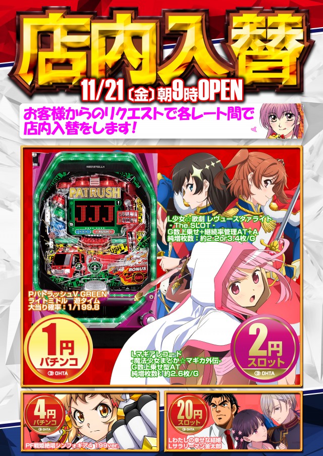 11月21日(金)本日店内入替予定!!