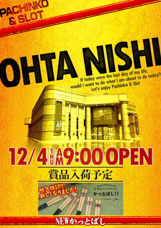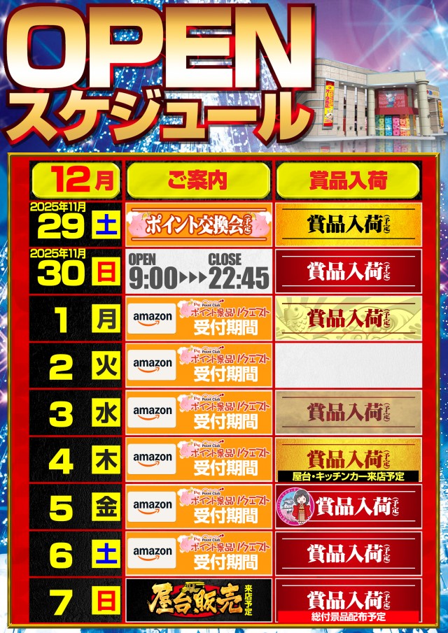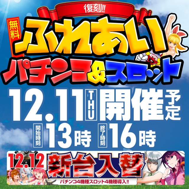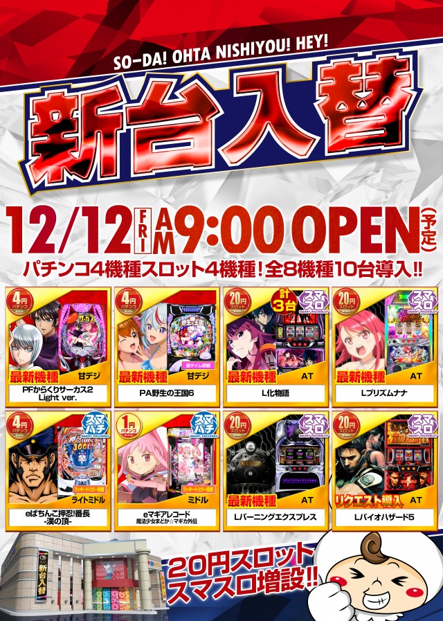 12月12日(金)本日新台入替朝9時OPEN予定!!