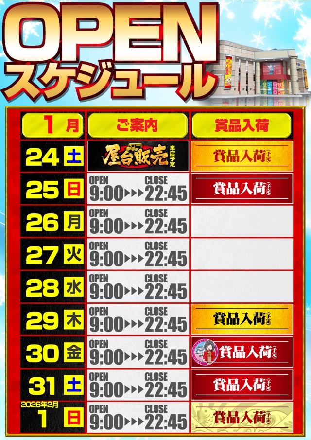 1位 1月1日(木) 2位 1月17日(土) 3位 1月14日(水)