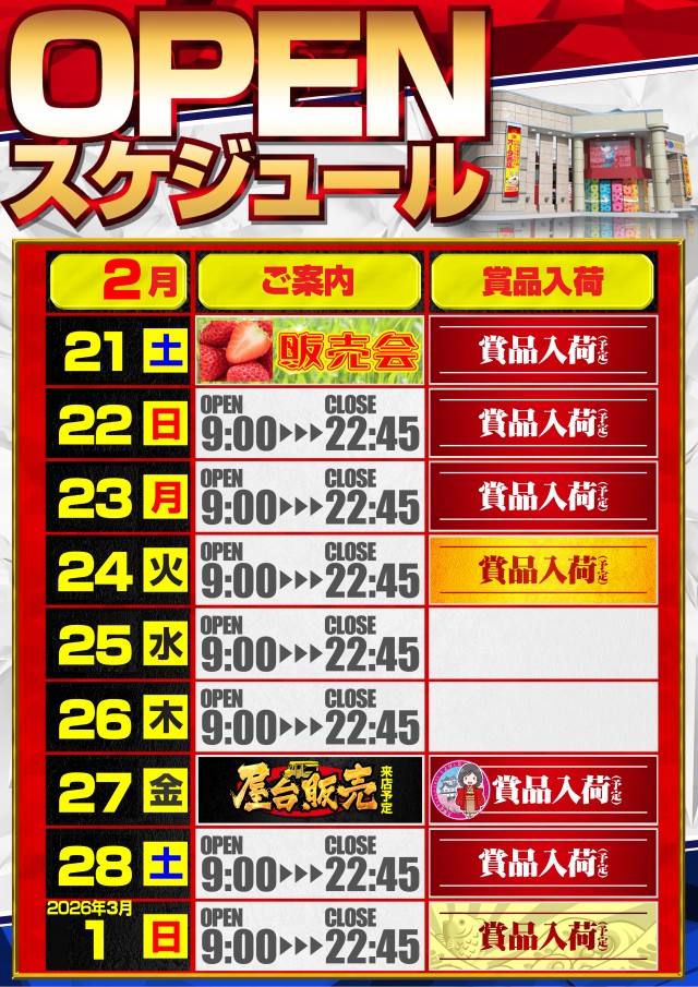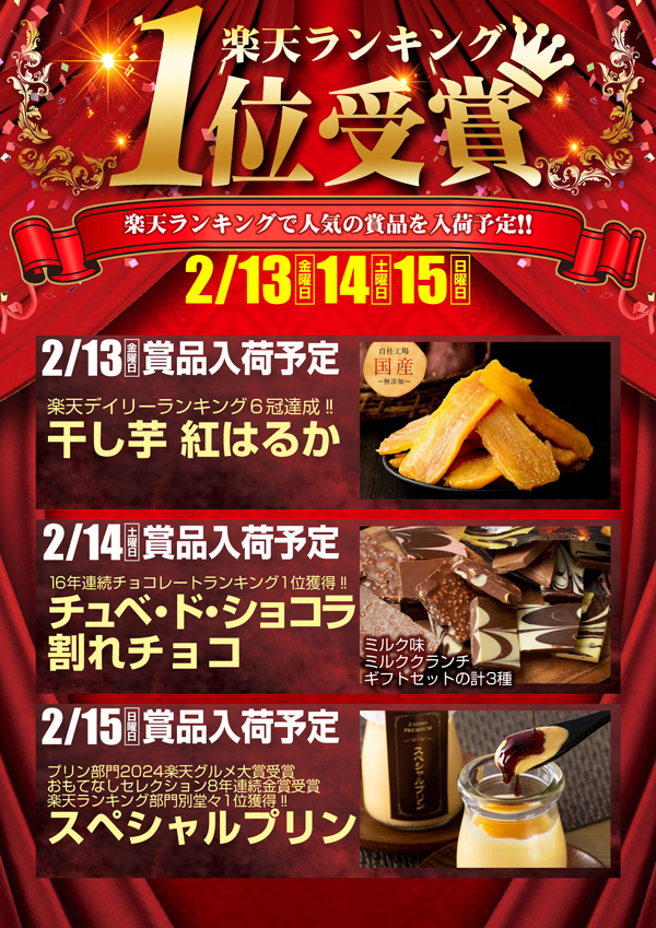 1位 2月4日(水) 2位 2月14日(土) 3位 2月7日(土)