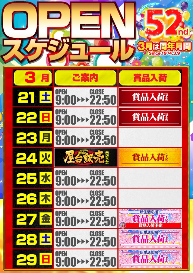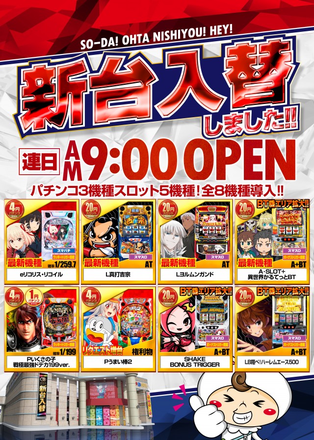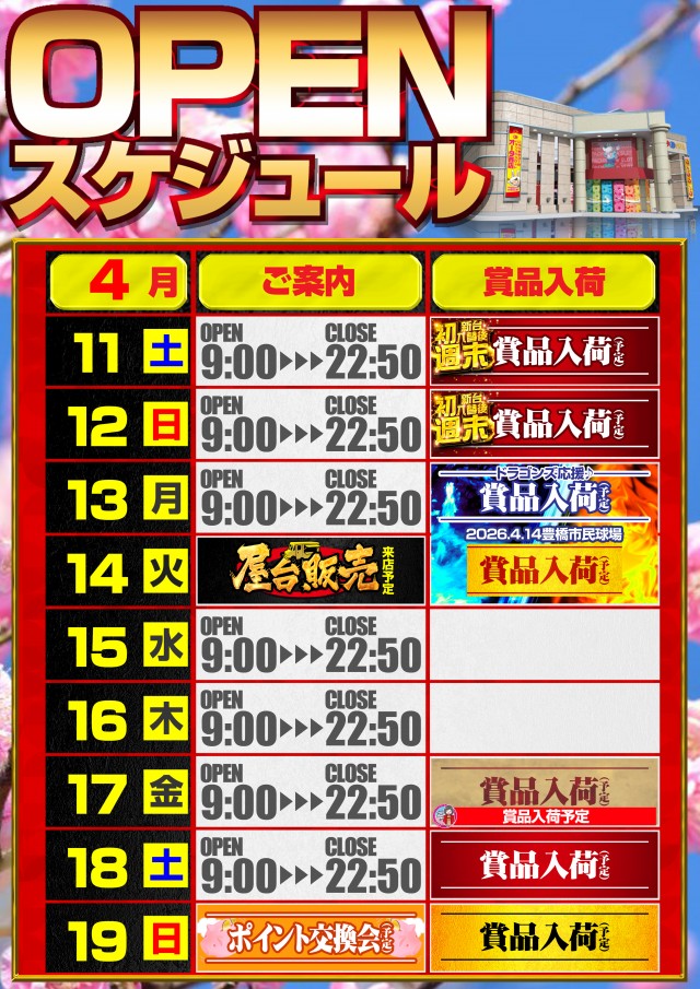 4月24日(金)本日新台入替朝9時OPEN予定!