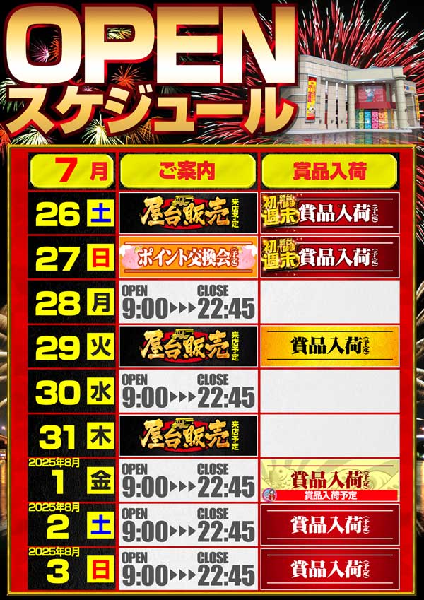 7月25日(金)★賞品入荷★朝9時OPEN予定!