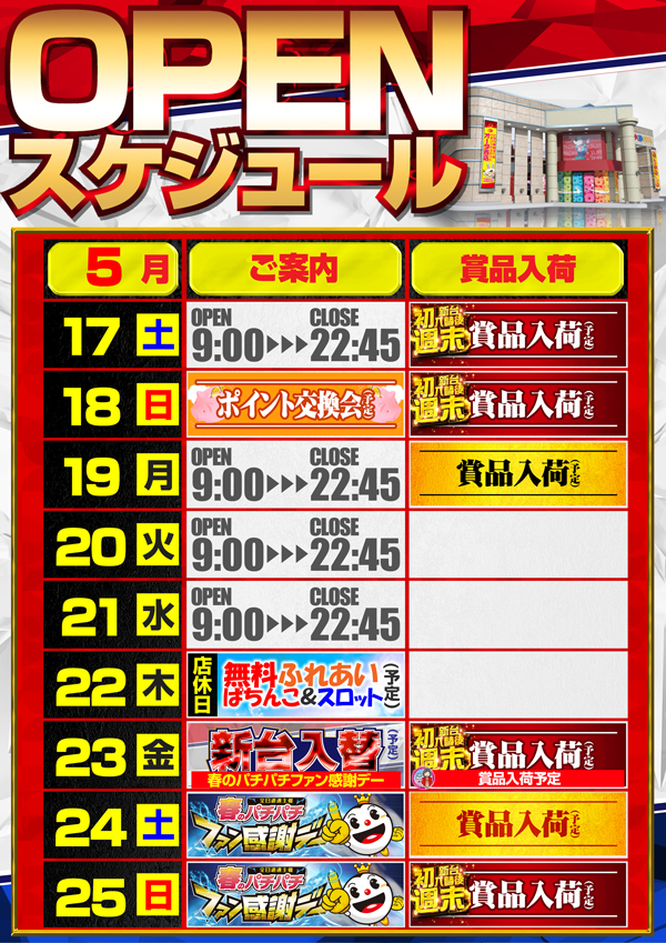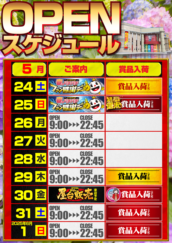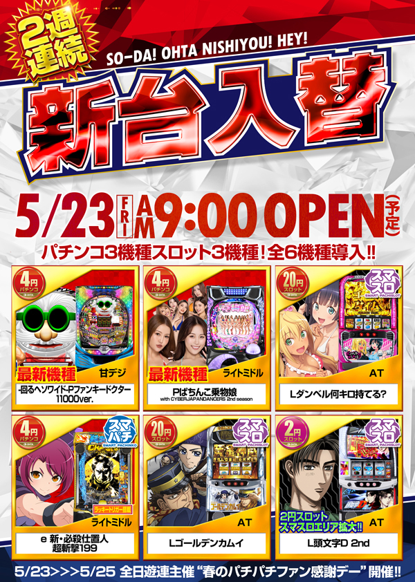 5月23日(金)新台入替初日!ファン感謝デー開催予定!