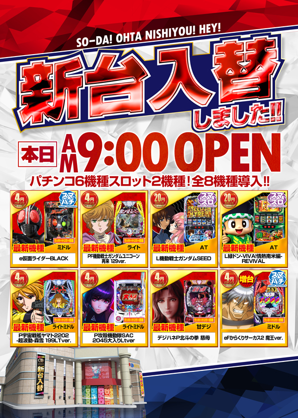 本日は店休日、明日は新台入替初日!