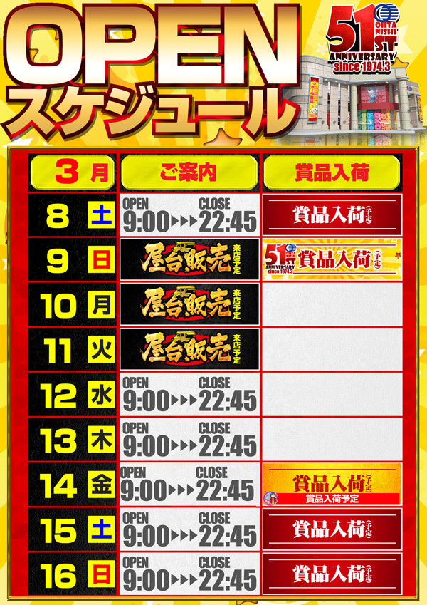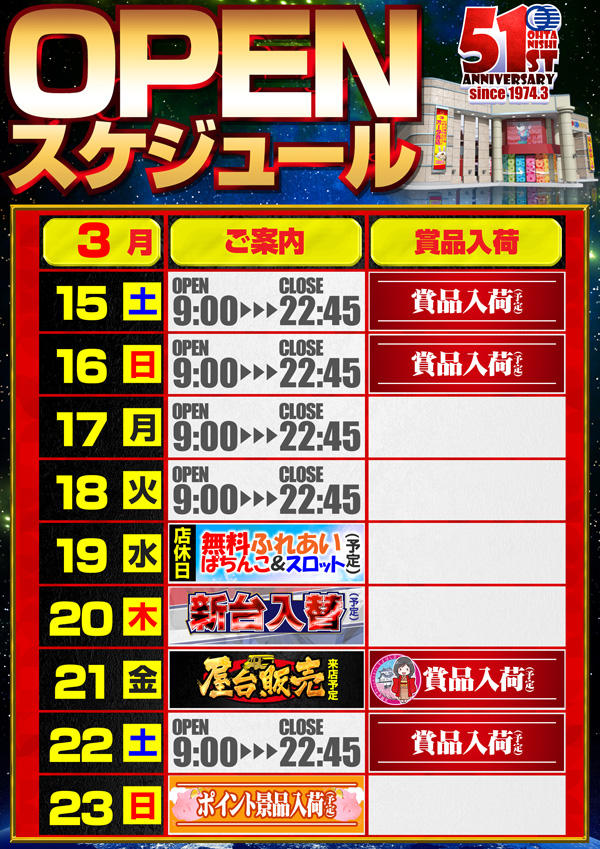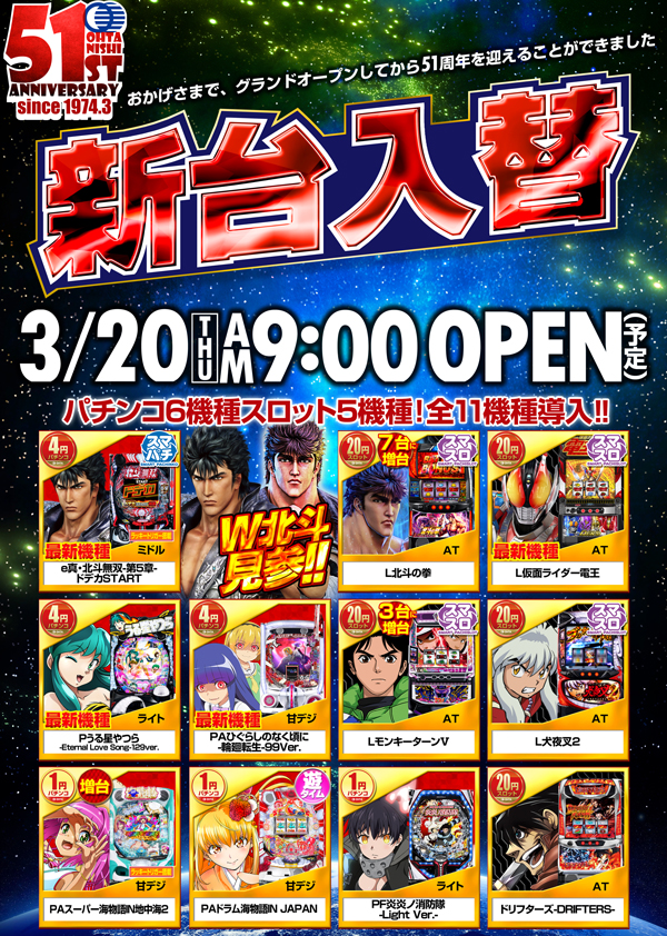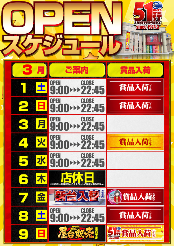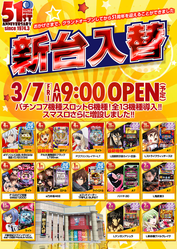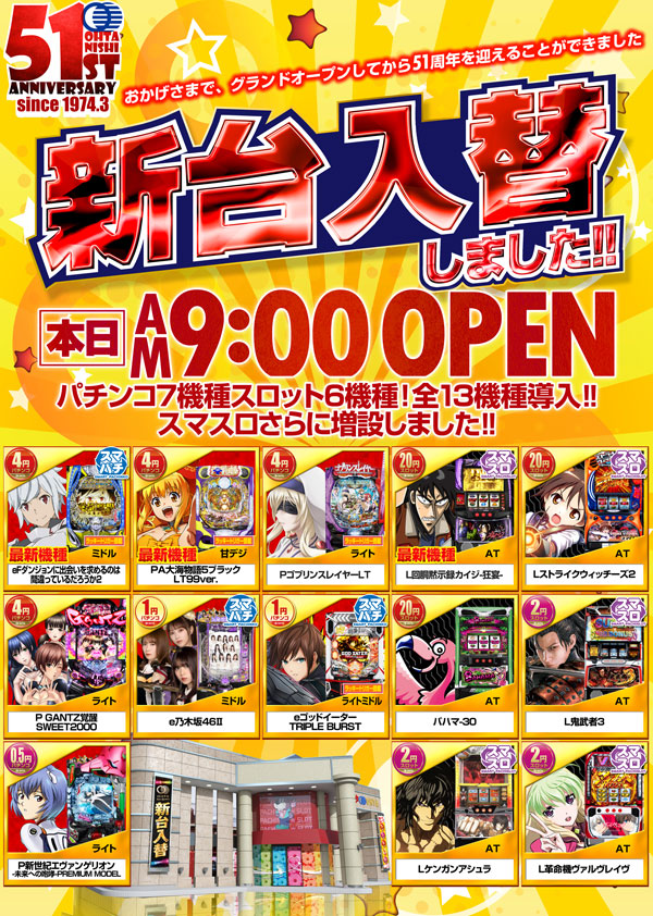★新台入替&賞品入荷予定 ★朝9:00オープン!!