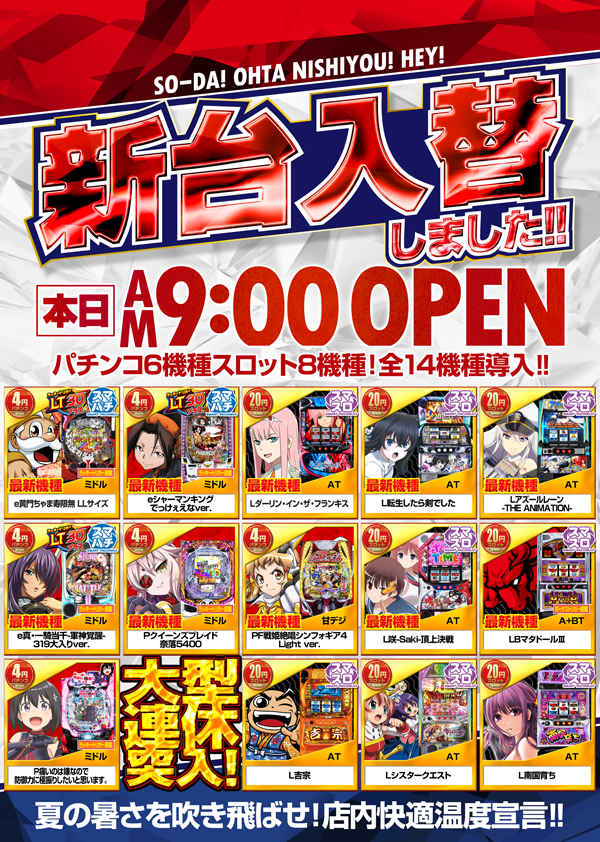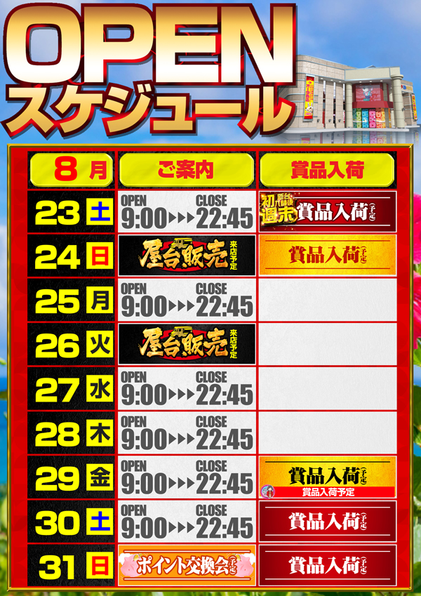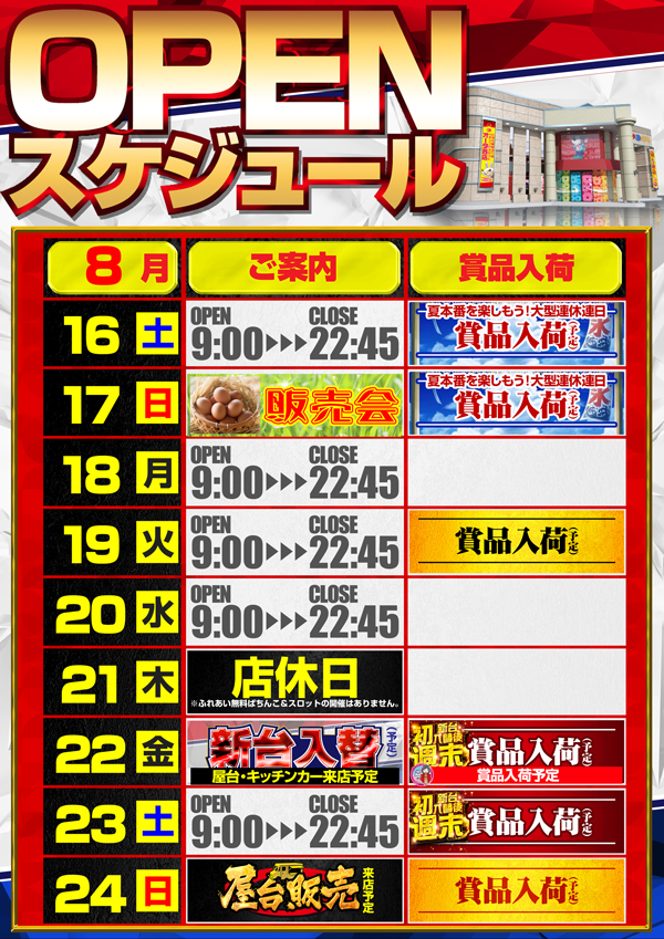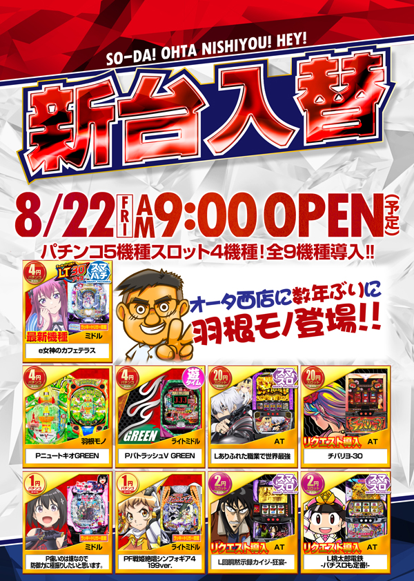 8月22日(金)★新台入替★朝9時OPEN予定!★