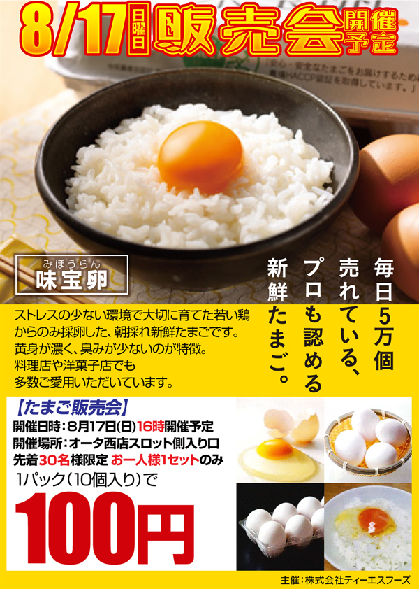 8月17日(日)★たまご販売会開催予定★朝9時開店!★
