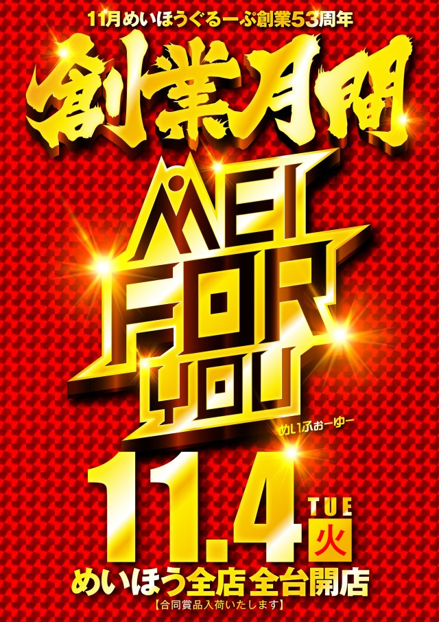明日 11月4日 創業月間×合同賞品×最新台最速解禁!!