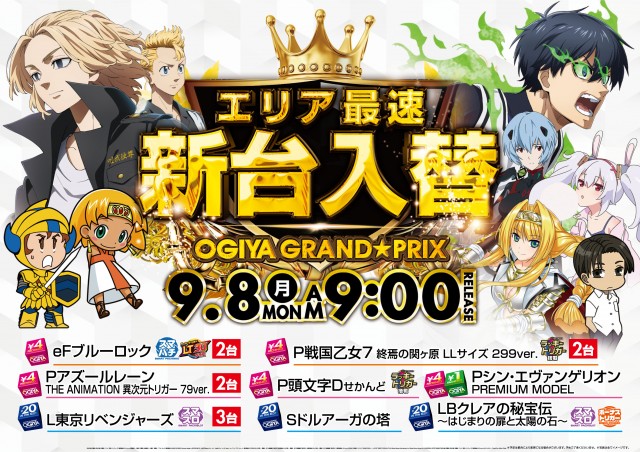 ☆★9/8(月)エリア最速!新台入替初日☆★朝9時オープン💖