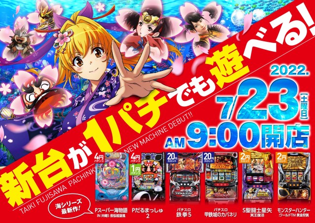 新台入替&賞品入荷 本日も朝9時から夜22時45分まで営業