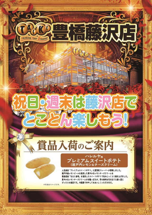 本日 店休日 明日 新台入替 賞品入荷 朝9時開店予定