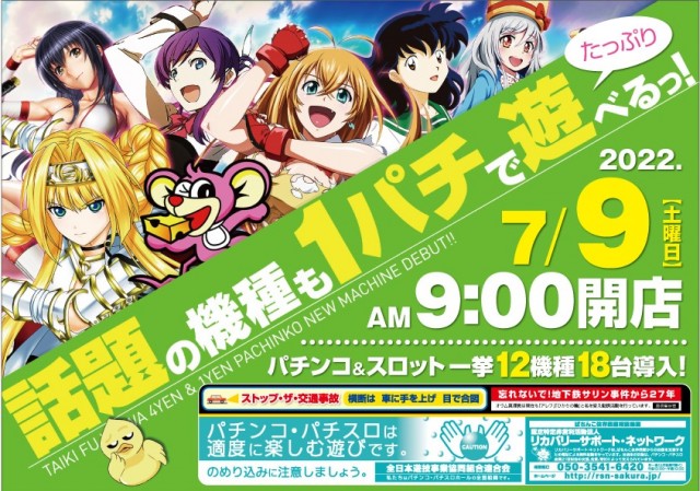 本日 店休日 明日 新台入替 賞品入荷 朝9時開店予定