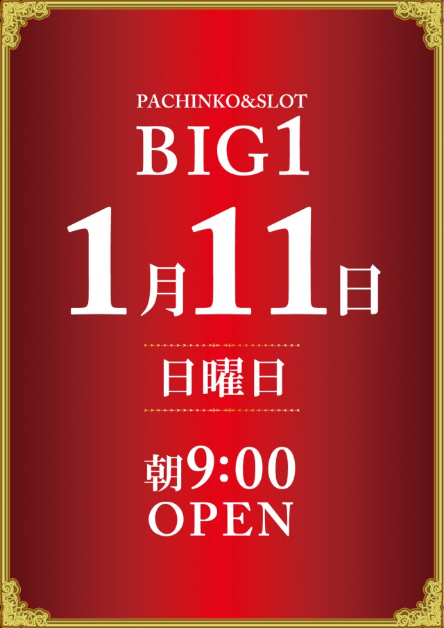 新年初打ちはBIG1へ!!グループ8店舗朝9時開店