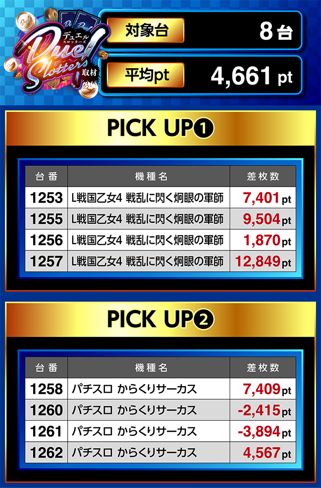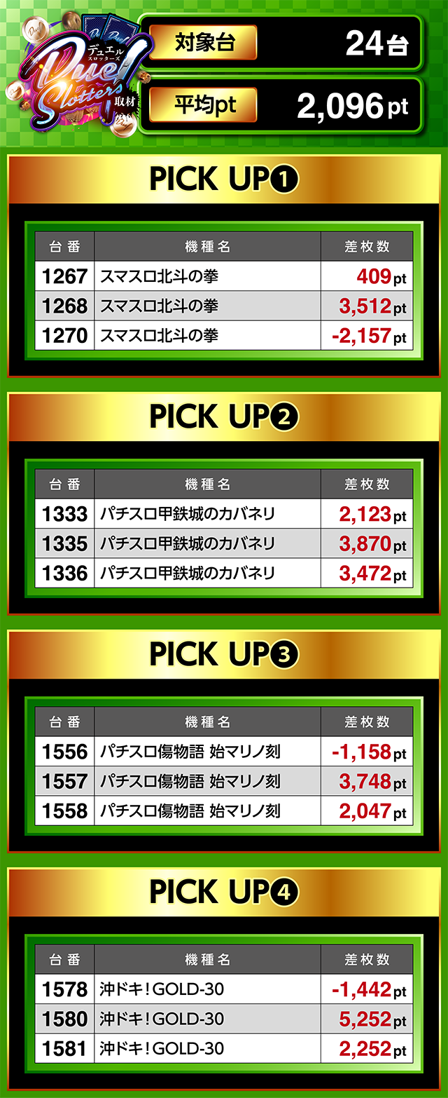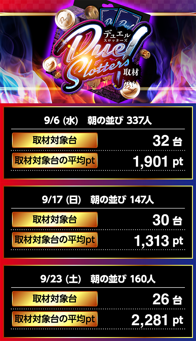 9/6・「PICK UP並び」~3台連続で2,400pt超!!