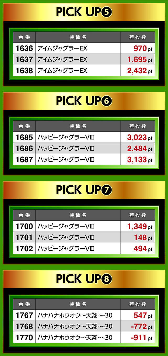 9/23・「PICK UP機種」~全台が1,800pt超となった機種も!!