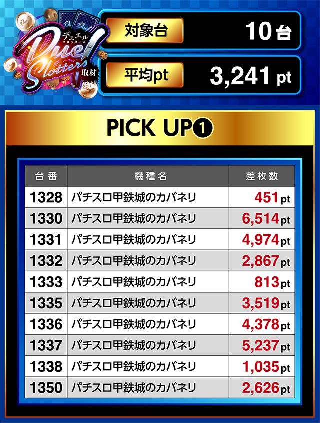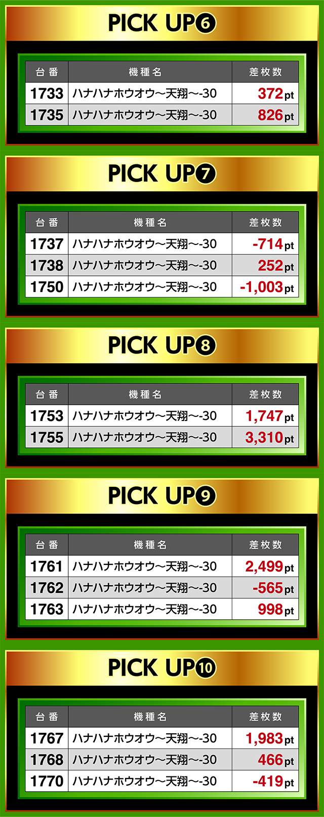 1753番台と1755番台に1,700pt超が続くなど、多くの台が並びで結果を残した。