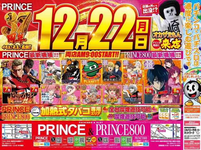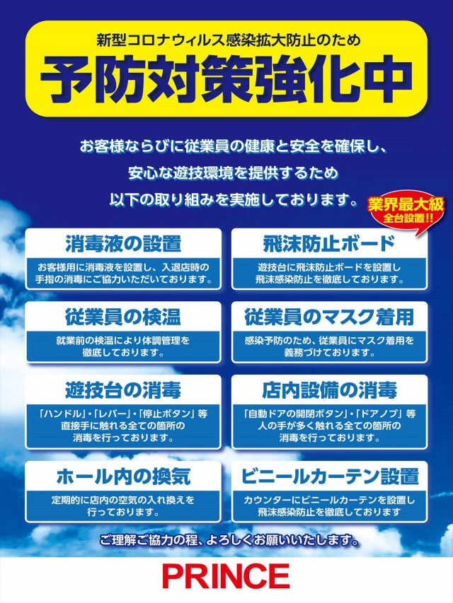 台間広々ゆったり遊技。全台大型分煙ボード設置