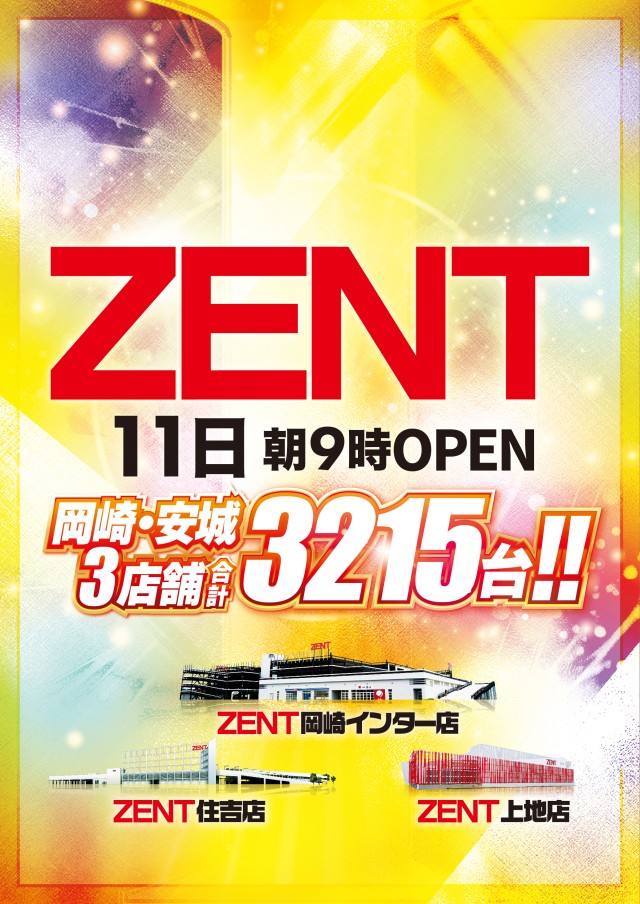 2月27日(火)ZENT全店朝9時開店!
