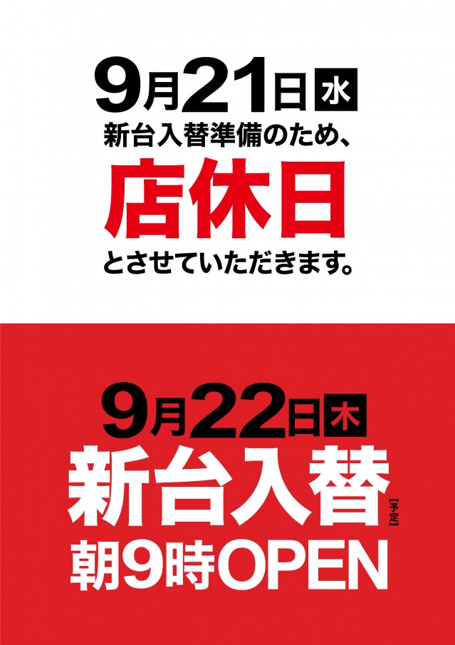 年中無休(新台入替前日はお休みを頂きます) |