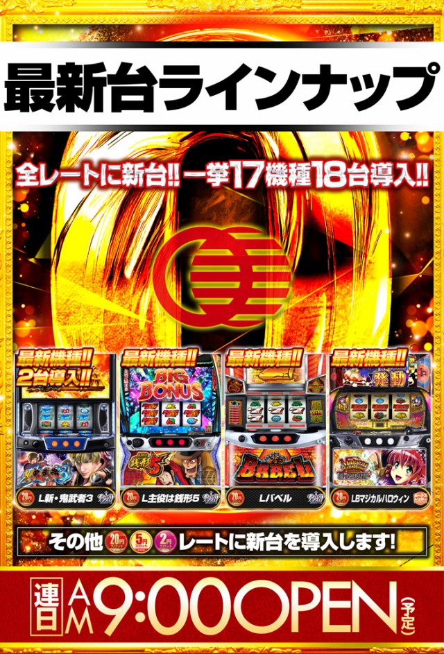 7月24日(木)新台入替準備の為【店休日】とさせて頂きます!
