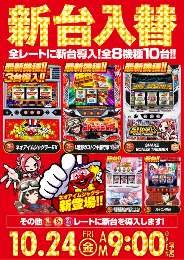 10月27日(月)新台入替しました&ポイント交換会あります!