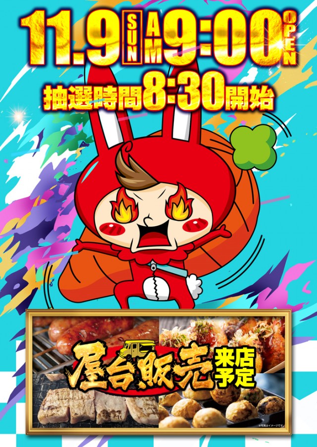 11月9日(日)8時30分抽選開始!屋台販売あります!!
