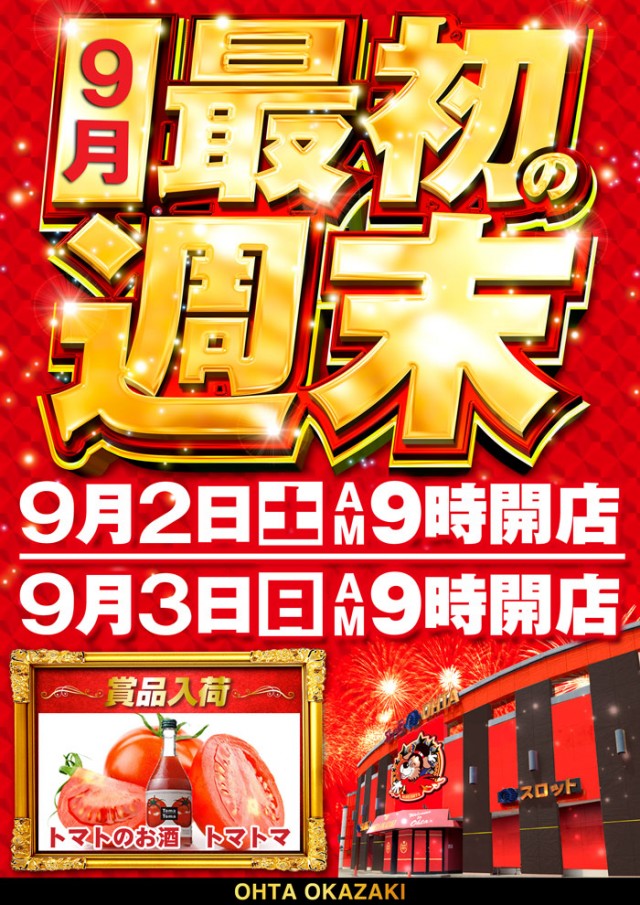 明日9月2日(土)9月最初の週末!あさ9時よりフルオープン!