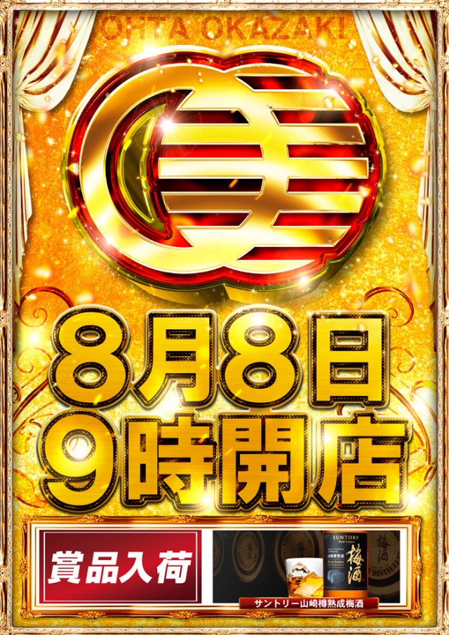 あす8月10日(木)【新台入替初日】あさ9時フルオープン!