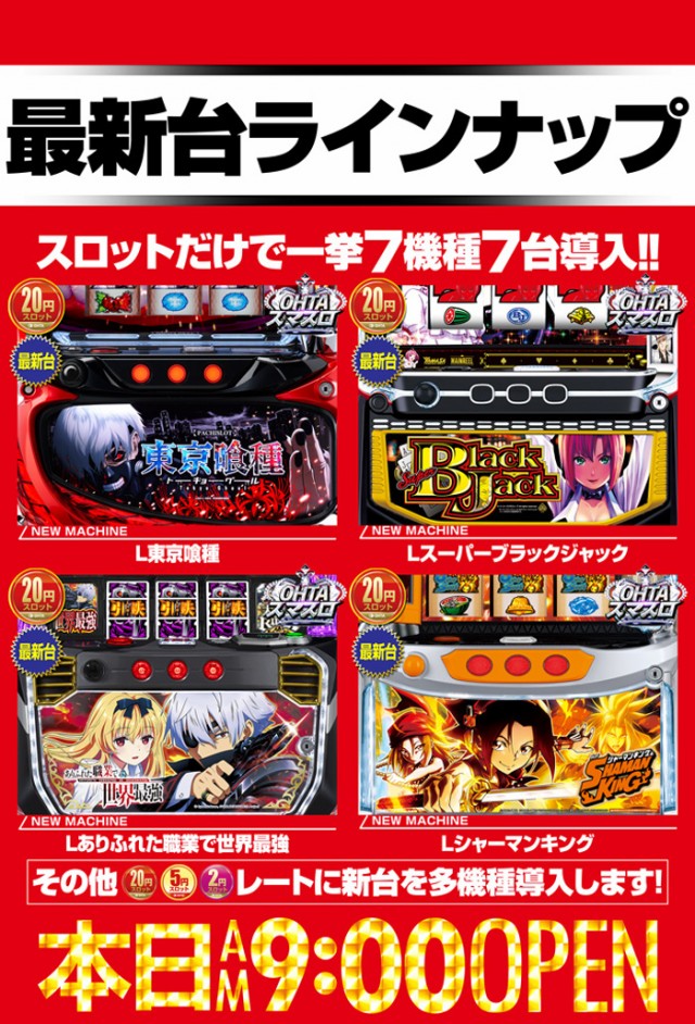あす6日(木)新台入替準備の為、【店休日】とさせて頂きます!
