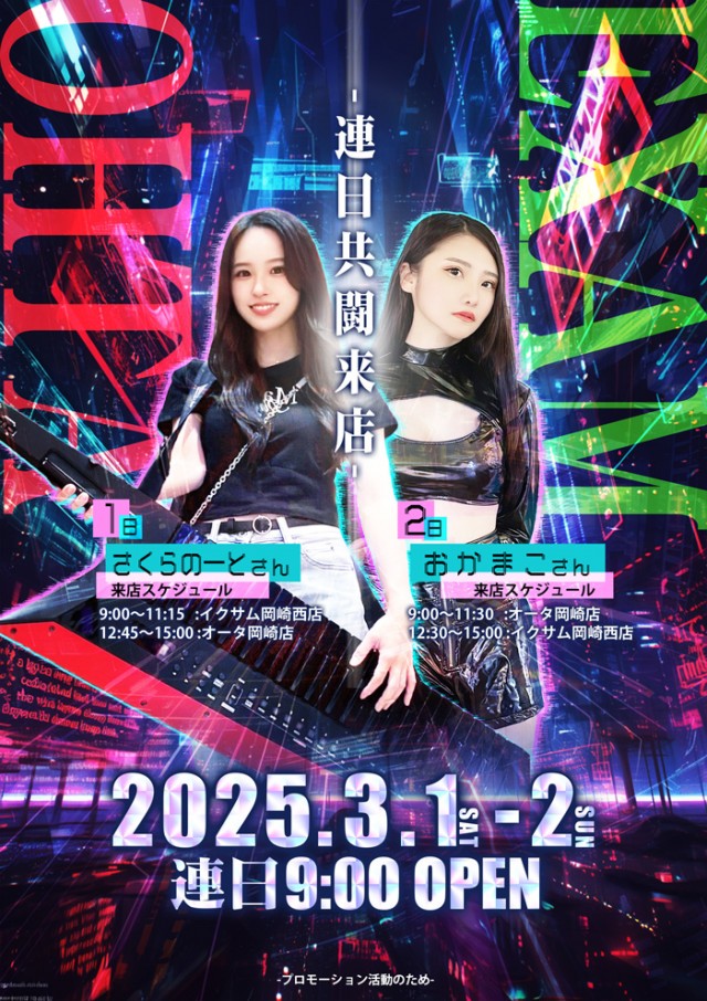 あす2日(日)オータ×イクサム共闘💖おかまこさん来店予定💖