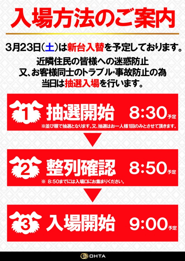 あす23日(土)【新台入替初日】あさ9時よりフルオープン!