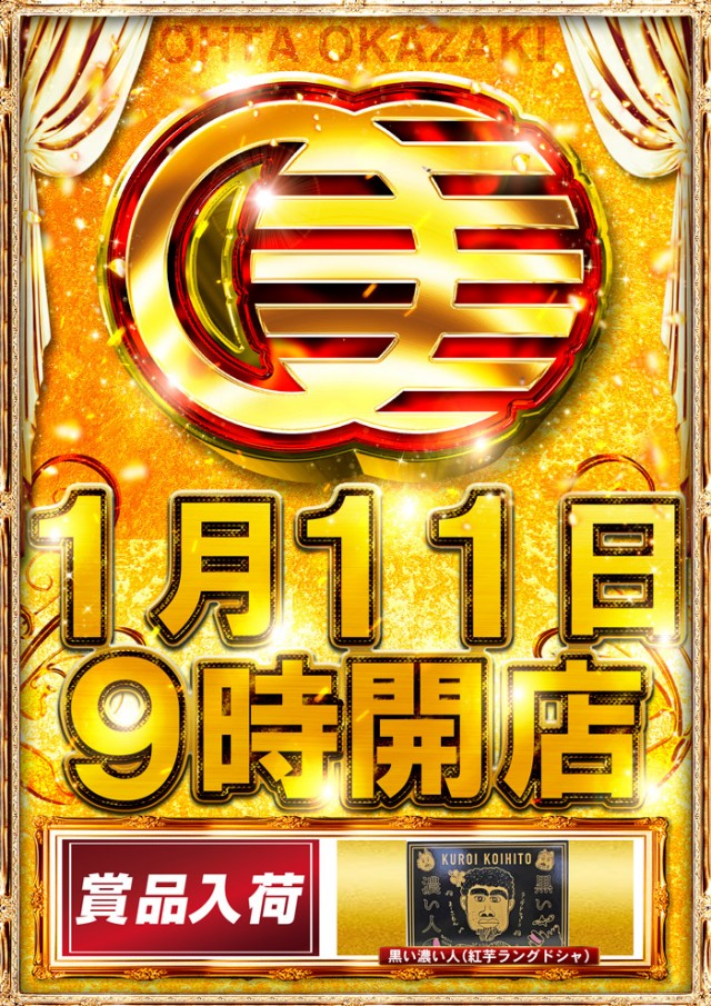 あす1月11日(土)新台入替後最初の週末!8時30分抽選!