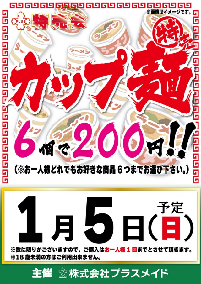1月5日(日)💗おかまこさん来店💗&カップ麺特売会開催!!
