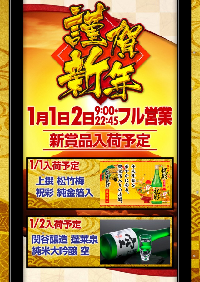 明日1月1日(元日)謹賀新年!あさ8:30抽選開始!