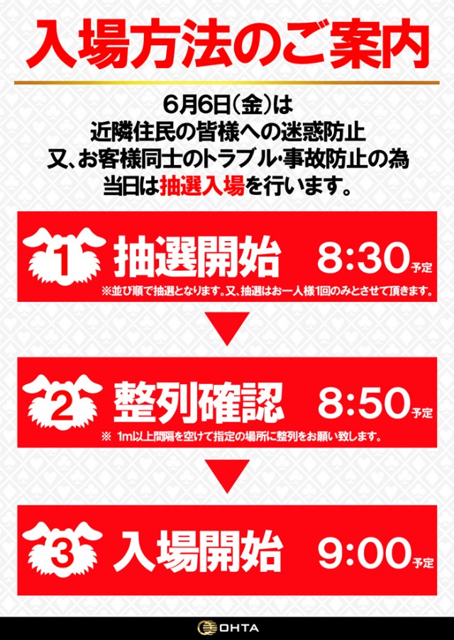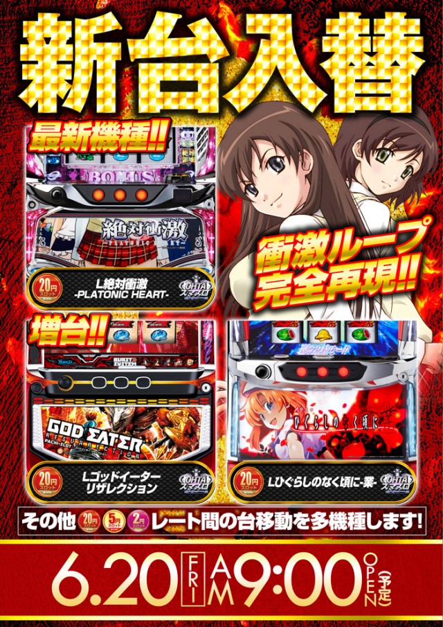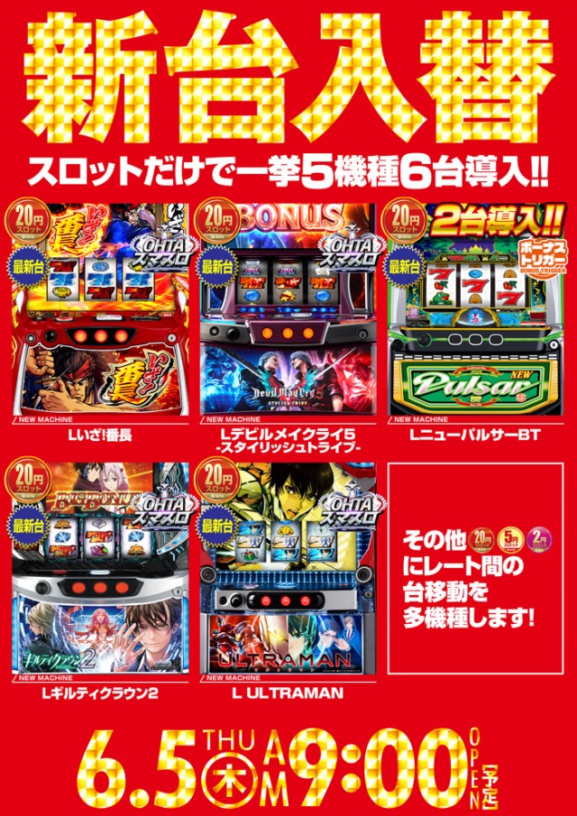 6月5日(木) 新台入替 朝9:00オープン(予定)!