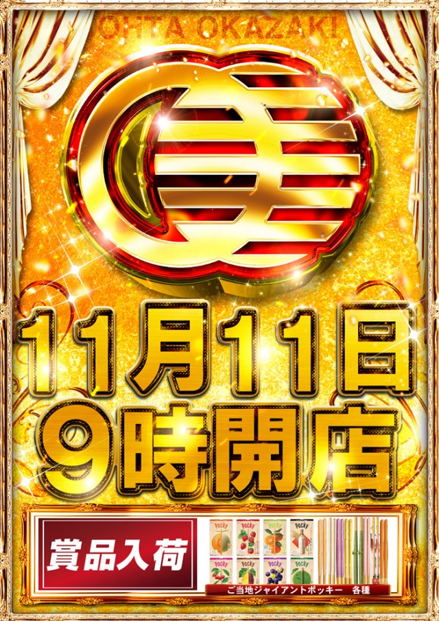 明日11月11日(月)賞品入荷☆ジャイアントポッキー各種★