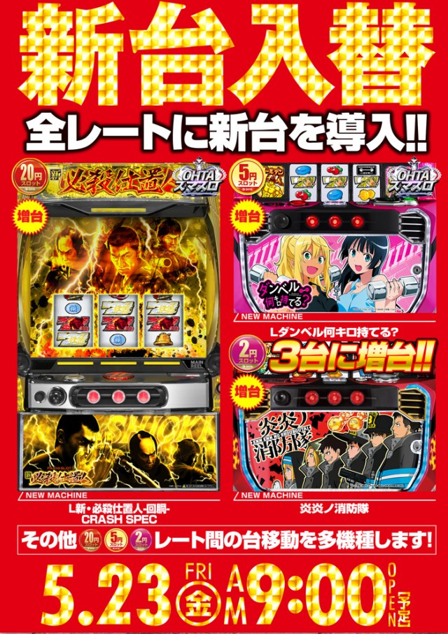 あす5月23日(金)新台入替初日&ファン感謝デー開催!!