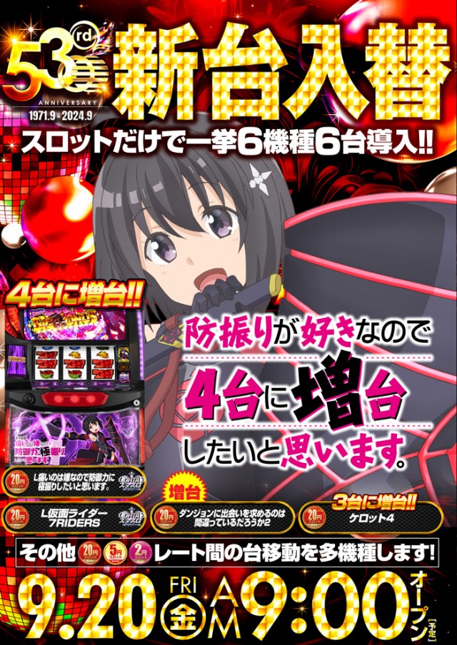 9月30日(月)抽選8時30分!あさ9時よりフルオープン!!