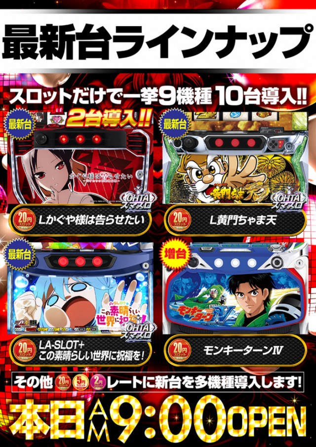 明日9月19日(木)【新台入替】準備の為、店休日となります!
