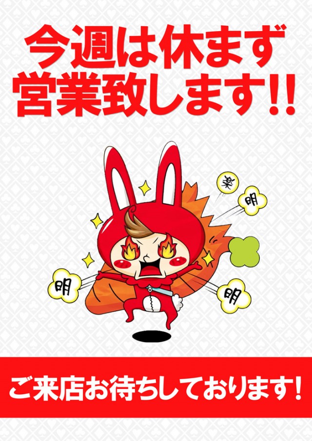 本日5月12日(日)8:30抽選開始!朝9時よりフルオープン
