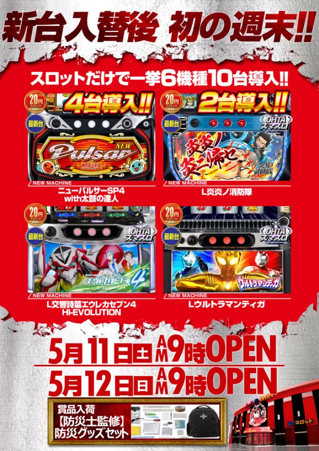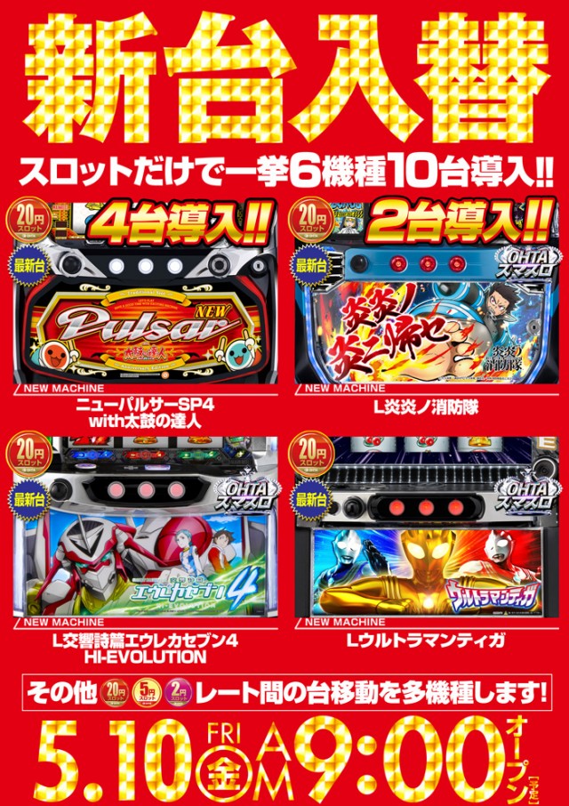本日5月9日(木)【新台入替】準備の為、店休日となります!