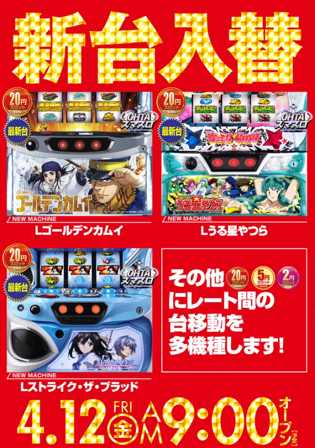 明日4月24日(水)☆★新台入替初日★☆あさ9時フルオープン
