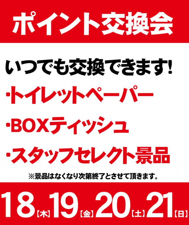 18日(木) 本日からポイント交換会開催!!