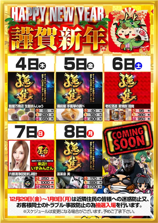 あす1月10日(水)抽選8時30分から!9時フルオープン!!