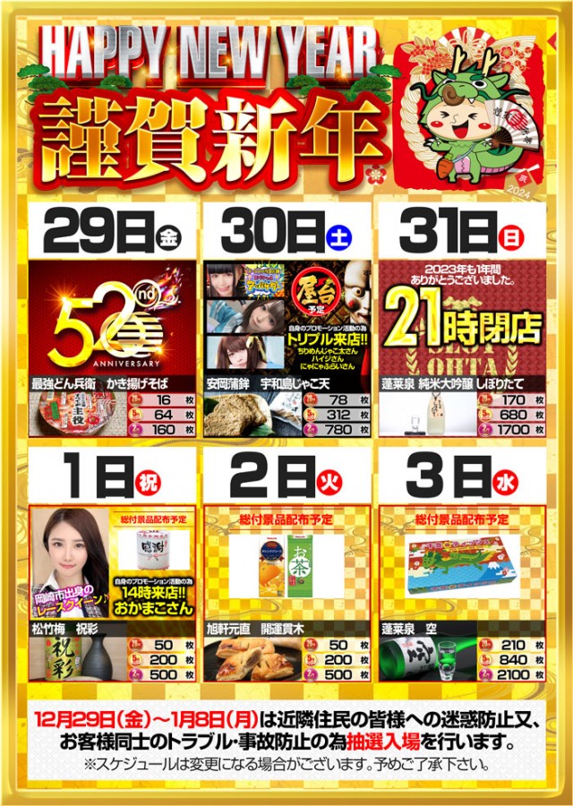 1月3日(水)総付景品配布予定☆あさ9時よりフルオープン!