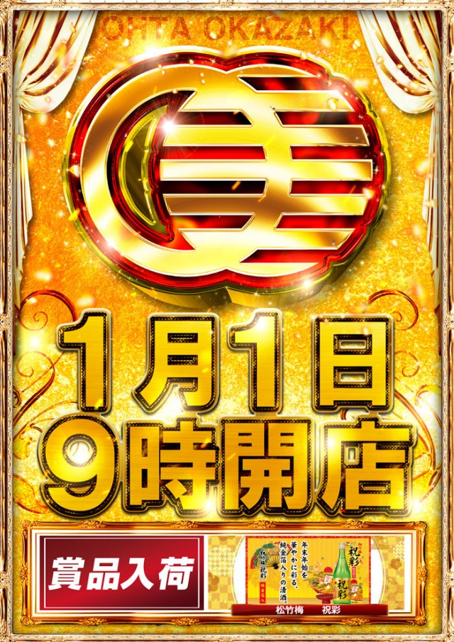 1月2日(祝)総付け景品配布予定☆あさ9時よりフルオープン!