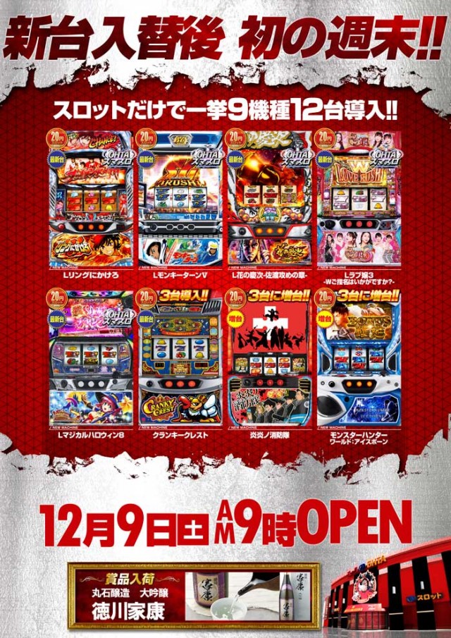 明日12月7日(木)【新台入替】準備の為、店休日となります!