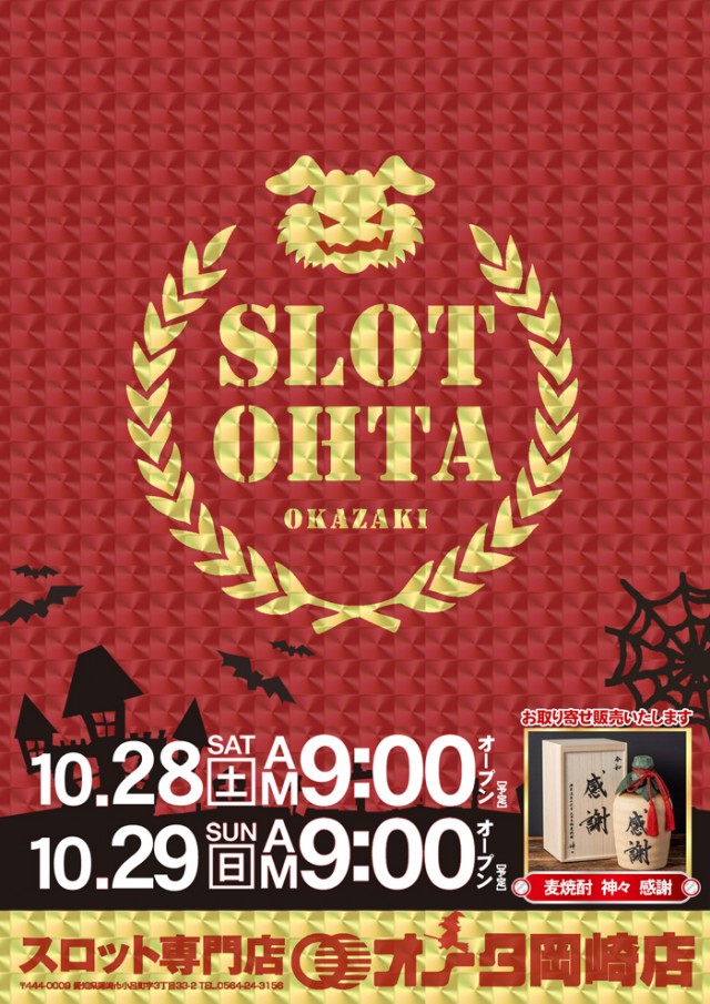 🎃10月最終週はスロ専のオータ岡崎店でお楽しみ下さい🎃