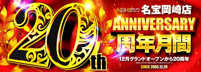 20周年と節目を迎えて感謝!明日も名宝岡崎店は午前9時開店!